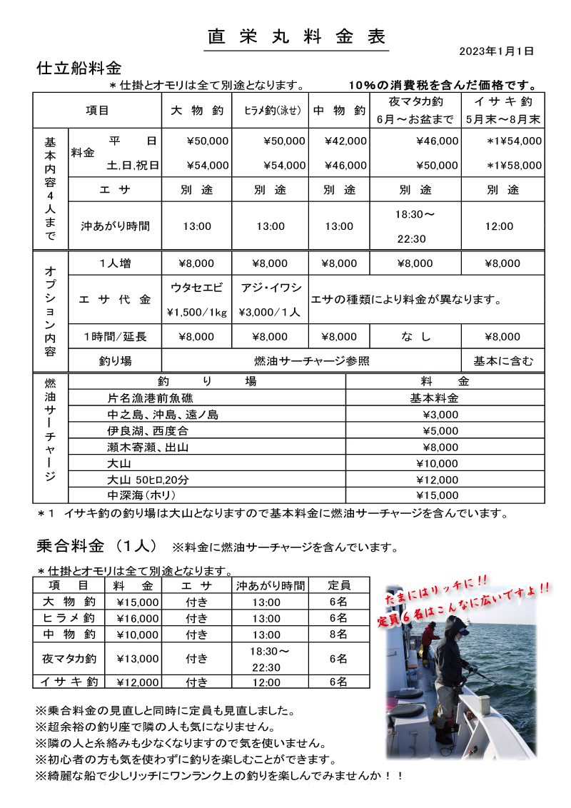 | ☆単独(1人)釣行の方の10%割引は終了させていただきました。 |
